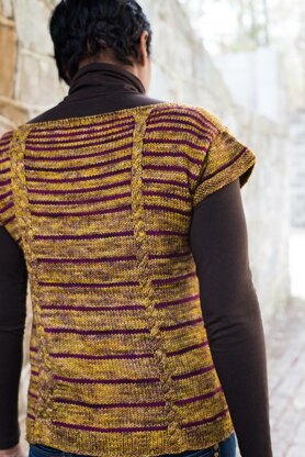 Details: Twin Vines is knit in the round from the hem. The neckline is a wide boat neck that is edged with ribbing that echoes the hem. The top is worked as a drop shoulder with stitches for the short sleeves picked up after seaming. This pattern is suitable for an intermediate knitter who wants to add to their skill set but also an experienced knitter who enjoys a little intrigue without too much fuss.