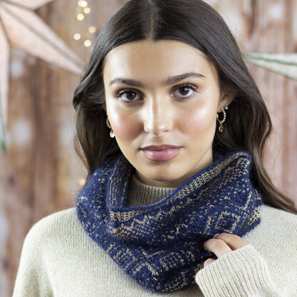 The Polar Nights Cowl pairs soft and shiny yarns to great effect, creating a beautiful cowl worked in a geometric stranded colorwork motif. Soft Merino wool Donnina is held with Super Kid Mohair Silk throughout, with shiny gold Ricorumi Lamé DK creating the glittering pattern. Cowl is knit seamlessly in the round with slipped-stitch hems bordering the stranded center. Give a special knitter in your life a beautiful project kit or work up the cowl to gift to a friend! Stranded colorwork pattern is charted only.