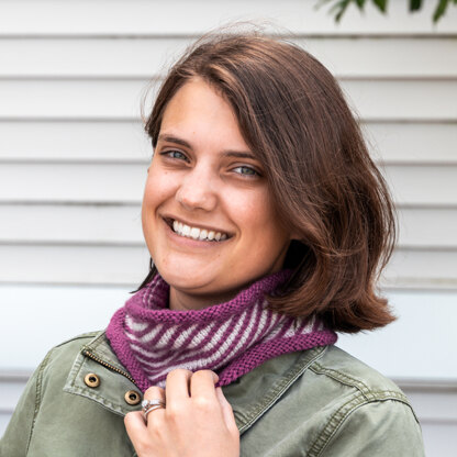 match anyone’s taste. This accessory is knit in the round from the bottom up.