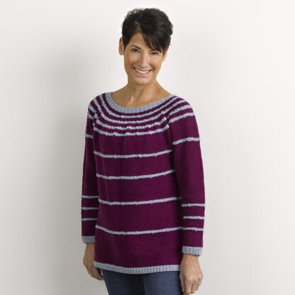 spring days. The pullover is knit in the round from the bottom up, with narrow