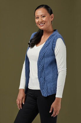 Valley Yarns Maranjab is a stunning women’s open vest perfect for layering over a long sleeve tee or turtleneck knit in Wachusett, which you will enjoy for years to come. The vest features a wrap-around cable band with a k2, p2 rib pattern at the hem and armhole bands. Maranjab is knit flat in one piece from the bottom up. Valley Yarns Wachusett is a gorgeous blend of Merino wool and cashmere, named after scenic Mount Wachusett—the highest point in Massachusetts east of the Connecticut River. The cable patterns are charted and written out.