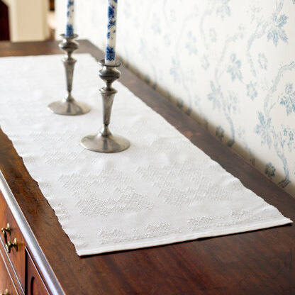Weave Valley Yarns Lily Lace Runner designed by Barbara Elkins in delicate Huck Lace for special occasions or just to adorn a favorite bureau. The warp and weft floats pull the threads into graceful curves for an heirloom look. The easy-care cotton means it's suitable for everyday use, too.