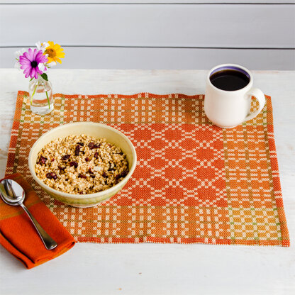 Valley Yarns Autumn Placemats are Summer & Winter placements in autumnal colors that look good for formal and casual occasions. For a different twist on Summer & Winter, this draft features changing tabby colors against the beige pattern weft to create the striking design.