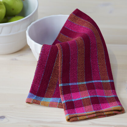 Cheerful Valley Yarns Candied Beet Towels have a great texture provided by weaving with 2 heddles, a technique that allows the weaver to double the sett and add dimension. Expand the possibilities of your Rigid Heddle loom and have fun playing with colors. The warp is long enough to weave four towels, so you can have fun mixing up the color options for a stunning set of towels.
