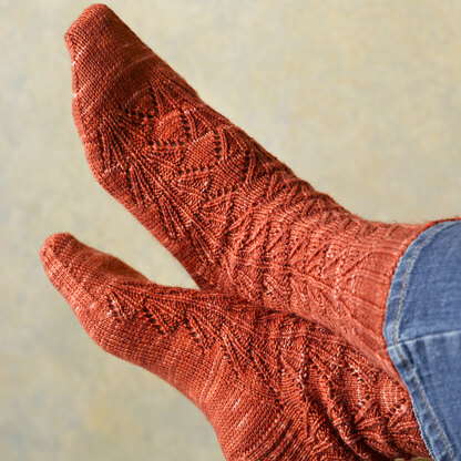 Even though it now resides south of the Azores, the Great Meteor Hotspot, one of the oldest hotspot trails on Earth, once created the White Mountains in New Hampshire and the New England Seamount Chain off the coast of Massachusetts. The vibrant orange color and the plume of ribbed lace on these cuff-down Great Meteor Socks calls to mind this surprising volcanic history in New England. Knit in the soft, silky, and strong Valley Yarns Charlemont, these socks will have a great sheen and excellent stitch definition. Note: Lace pattern is both charted and written out.