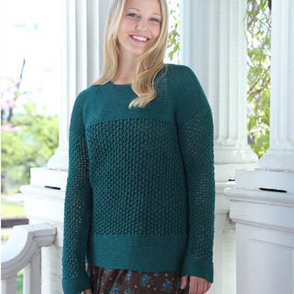 Finished Measurements: 32 (36, 40, 44, 48, 52)” chest (shown in size 36”)Yarn Requirements: 3 (3, 4, 4, 5, 5) skeins Valley Yarns Charlemont (60% Fine Superwash Merino Wool/ 20% Silk/ 20% Polyamide; 100g/439yds) shown in Evergreen