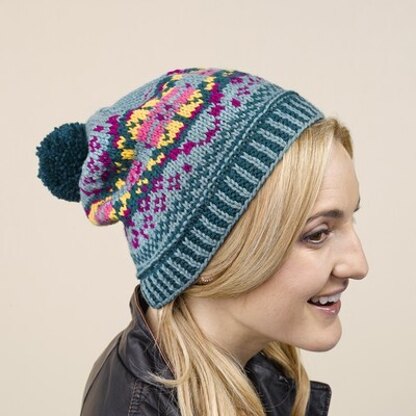 The Valley Yarns Plesti Fair Isle Pullover and Hat set knit in Valley Yarns Northampton features a traditional combination of fair isle pattern and color but encourages you to explore and play! Worked from the bottom up in rounds with seamless raglan shaping, this slightly oversized sweater lets you get all of the colorwork out of the way before any shaping happens, and the hat features decreases that mimic the raglan shaping on the sweater and a pom-pom! Stick with a more traditional palette for a sweater that’s great at the office or an afternoon at the ski lodge, and go wild with color for the hat.