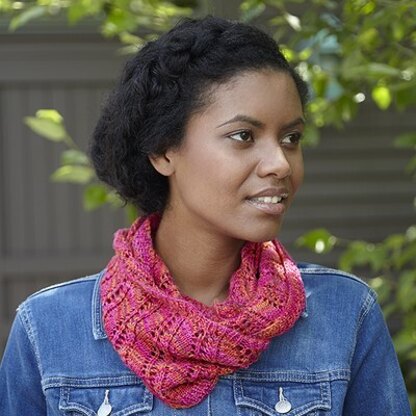 In the Deato Cowl by Kirsten Hipsky, an irregular chevron stitch pattern creates a cowl with compelling diagonals and electrifying zigzags. This pretty accessory is knit in Valley Yarns Charlemont, a Merino and silk blend fingering weight yarn with spectacular colors and plenty of drape.
