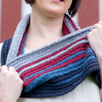 A simple stitch pattern and alternating stripes make Valley Yarns Interrupted Quads cowl a great blend of color and texture. This magnificent accessory is knit in Valley Yarns Peru, a squishy soft baby alpaca, Merino wool, and a hint of nylon.