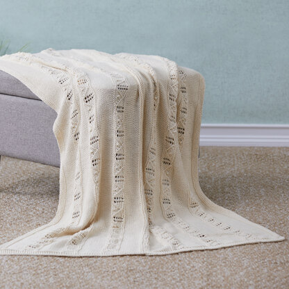 Valley Yarns Dicentra is a lacy throw that is a perfect year-round home accent. This blanket is crafted in two easy pieces worked sideways and then seamed together. This blank would make a fabulous baby shower gift or a wedding gift. Knit in Valley Yarns Granville a sport weight blend of Pima cotton and Merino wool that is fantastic for warm-weather sweaters, shawls, and throws. The lace pattern stitch is charted and written out.