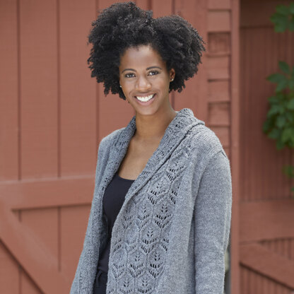up all winter long knit in Amherst. With its front, long sleeves, and set-in pockets, it’s a classically wearable design with fresh details. Wide lace front