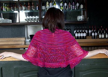 It is a delicate yet seductive shawl in a semicircular shape, created using sock weight yarn. The deceptively intricate-looking lace panel is easy to memorise, making this shawl ideal for both an intermediate or adventurous beginner lace knitter. The picot bind off gives a beautifully eye-catching trim.