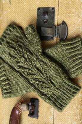 Simple, cozy fingerless mitts with a sprouting plant motif decorating the top of the hand.