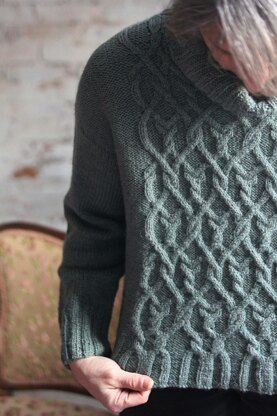 A simple pullover with a gorgeous cable at front. The lines are soft and elegant, and the piece is knit in a lovely alpaca merino mix yarn for some comfy drape and swing.