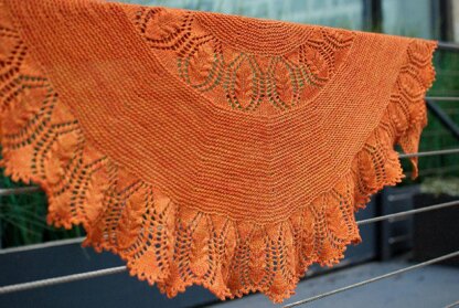 This half-pi shawl is worked from the center top down. Wide sections of garter stitch are separated by bands of lace. A delicate picot bind off finishes the bottom edge.