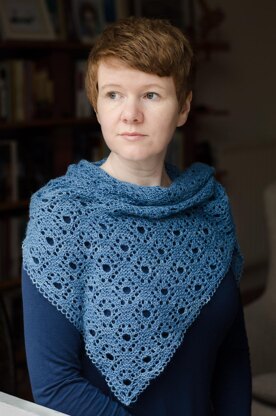Vidlin is worked bottom up using a Shetland construction to create the triangular shape. It features a stunning geometric lace pattern that is sometimes seen in traditional Shetland edgings but in this case has been used to form the all over pattern.