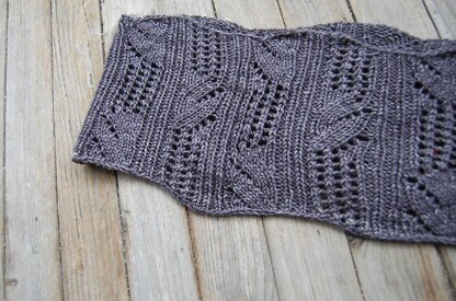 A lace and rib loop scarf that can be worn doubled as a cowl.