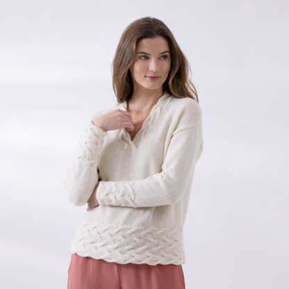 String Violet Pullover is a gorgeous sweater featuring wide cable borders. The cable panel for each piece is worked first, and stitches are picked up along the edge to work the rest of the back, front, and sleeves. Knit in Dolcetto DK, Violet Pullover will become one of your favorite sweaters. Note: Cable pattern is written only.