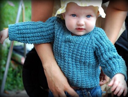Sweater of champions! Clad your baby, toddler, child or youth in this fun, easy to knit pullover. Knit from the top down, raglan style, in a stretchy and easy to memorize waffle stitch pattern, Waffles also features twisted rib details and an optional button placket collar.