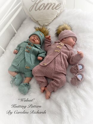 This pattern provides the instructions to make the Jacket, Shorts, Longer leg trousers, Bobble hat and Shoes. Both the jacket, shorts, and trousers are knitted from the top down using single pointed standard needles, with easy line by line instructions