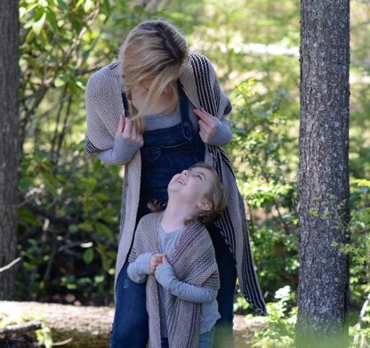 Sample is shown in Tosh DK by Madelinetosh, large size pictured in 2 colors Antique Lace & Cloak, small size pictured in 3 colors Antique Lace, Cove & Begonia Leaf.