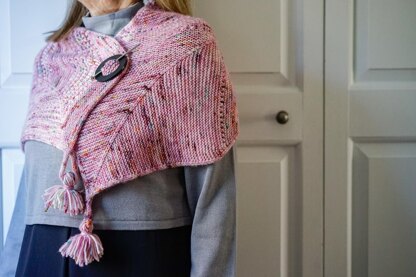 This fun-to-knit, easy-to-wear shawl can be knit in 4 different sizes ranging from a simple Shawlette (shown in Qing Fibre Super Soft DK color Berry Milkshake) to an oversized Wrap (shown in color Daffodils). It begins and ends with a 4-st I-cord which is then embellished with an oversized tassel! The yarn is scrumptiously soft and beautifully dyed, making this they type of shawl that you will seek out and wear all the time.