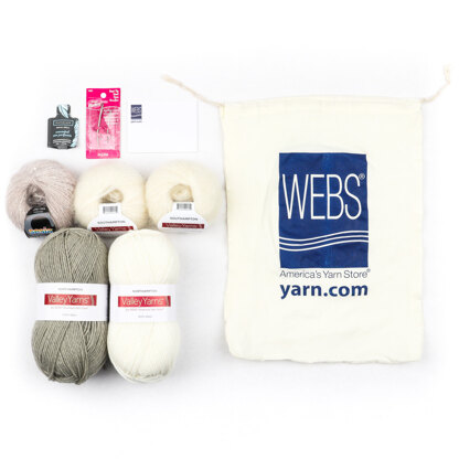 The WEBS 2024 Winter Pines Holiday Kit is full of frosty cheer for your home. Create a handmade winter wonderland of frosty pines using tried and true Valley Northampton with Valley Southampton or Sesia Bluebell for a bit of added sparkle. These festive and sparkly trees come in a variety of sizes, so you can create a forest that adds a magical touch to any room. Each kit comes with the yarn needed to complete the project, a printed booklet with both knit and crochet patterns, plus some *special goodies all tucked into a cotton drawstring WEBS project bag. Available in three color palettes, so you may choose what’s best suited to your home décor!