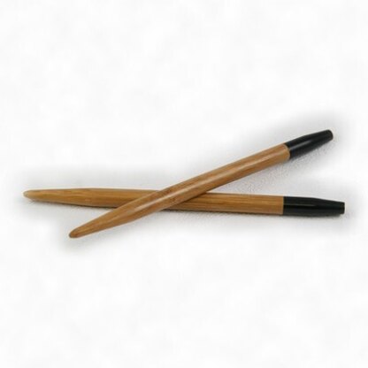 Made from high-quality, hard bamboo, our tips have an effective point that won't split or splinter. Smaller needles have a gold-tone base (thin), and larger sizes have a black base (thick), indicating which diameter of cable should be used. Available in sizes from US 3 to US 15. Each tip is 4 1/8" long.
