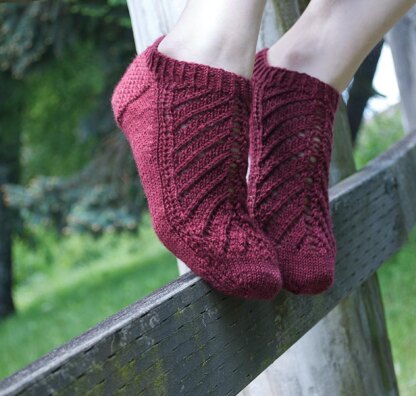 A sweet, lacy ankle sock that can be worked up quickly. I wear mine with Dr. Marten Mary Janes, but I've heard stories (and seen photos) of how wonderful they are with Danskos and other footwear.