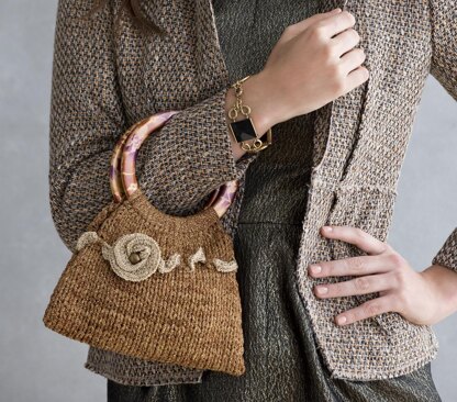 The West End Bag is a fashion forward design that looks stunning with everything, from an evening dress to a casual tank. It is knit with a simple Stockinette stitch, and stylishly finished with an accenting ruffle and rose. The combination of shimmering S. Charles Collezione Diana and Celine yarns guarantees this timeless accessory will be a favorite part of your ensemble.