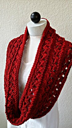 The cowl is knit in the round from the bottom up. With just a three stitch pattern repeat the pattern is easily adapted for any length and any weight yarn. The length shown wraps twice around the neck for a cosy cowl. Directions are given for worsted, Aran and Bulky weight yarns. Bonus instructions are given for 24 and 28” cowls.