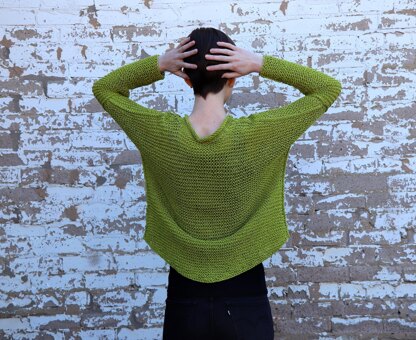 The Winthrop Street Sweater is a chic, chunky garter stitch pullover with dropped shoulders, exposed seams, and a curved hem. Worked at an airy relaxed gauge with three strands of fingering weight linen yarn, the sweater is ideal for three season wear. Winthrop Street is worked with 3 strands of Shibui Knits Reed held as one. Note: Be mindful of the nature of garter stitch. It tends to stretch vertically with wear. Be sure to allow for this in determining your personal sleeve length. If you decide to knit your sleeve to a different length than that specified in the pattern instructions, the number of stitches picked up for the sleeve seam should be modified accordingly.