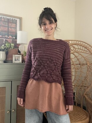 Witchy Vibes is a chunky pullover inspired by autumn and spooky vibes. The body features a texture and lace pattern with a scalloped edge that resembles acorns. The boxy fit makes for easy knitting and comfy layering. Knit up in Wing and a Prayer Farm’s hand-dyed Teddy Bear’s Picnic Clun Forest yarn, which has subtle variations in tone. Witchy Vibes is a quick, enjoyable knit that is perfect for layering all fall and winter long!