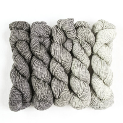 Why choose just one amazing color, when you could have five? The Wonderland Yarns Cheshire Cat 5-Skein Pack lets you play with a pretty range of colors - in 128-yard, fingering weight skeins - for a total of 640 yards in the package. Make a striped shawl, cowl or scarf with this 100% superwash Merino wool yarn in drop-dead gorgeous colors. The colors come packaged as shown.
