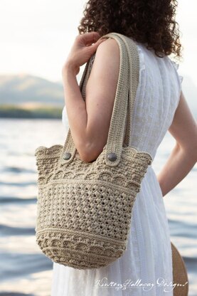 This sweet, textured tote bag is the perfect companion to accompany you to the beach, whether that's the ocean, or a picturesque lake in the mountains. The pattern includes 2 sizes.