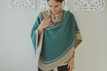 Zen Garden is a top down triangular knit shawl inspired by the peaceful, meditative lines raked into a zen sand garden. It is a large cozy shawl perfect for wrapping up on a chilly day. The design features two colors and simple garter stitch and twisted stitches in straight and wavy line sections. It is a relaxing and comforting knit. The shawl features a smooth i-cord bind off.